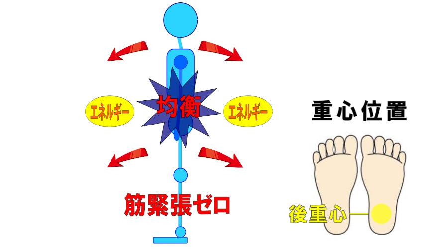 後重心は軸が直線となり安定しくるぶし下に荷重 |